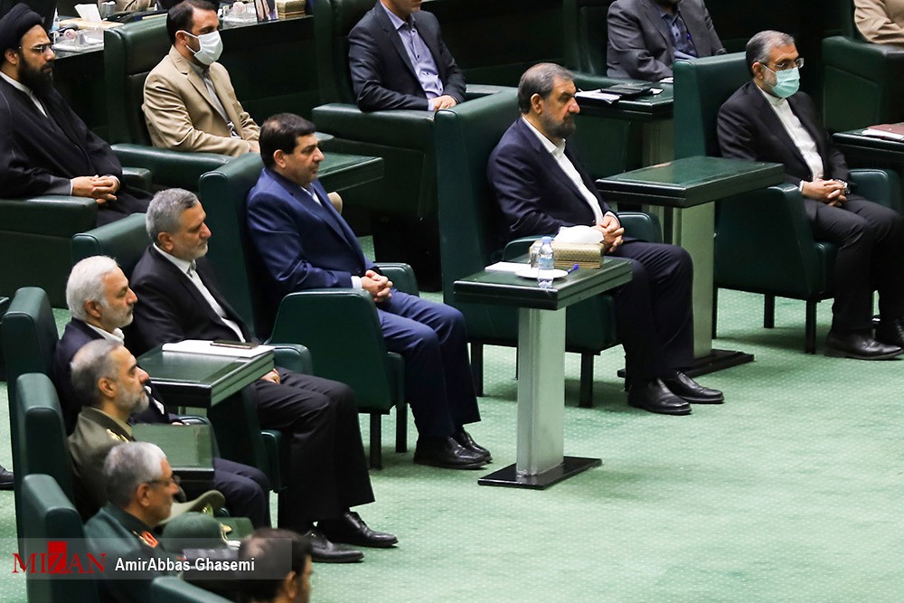 در جلسه علنی امروز چهارشنبه مجلس شورای اسلامی با دستور بررسی صلاحیت صولت مرتضوی برای تصدی وزارت تعاون، کار و رفاه اجتماعی، محمد مخبر معاون اول رییس جمهوری، غلامحسین اسماعیلی رئیس دفتر رئیس جمهوری، سیدمسعود میرکاظمی رئیس سازمان برنامه و بودجه، محسن رضایی معاون اقتصادی رئیس جمهوری، یوسف نوری وزیر آموزش و پرورش، محمدرضا قرایی آشتیانی وزیر دفاع و پشتیبانی نیروهای مسلح و سید محمد حسینی معاون پارلمانی رئیس جمهوری در صحن مجلس حضور یافتند.