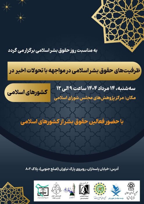 نشست علمی ظرفیتهای حقوق بشر اسلامی در مواجهه با تحولات اخیر در کشورهای اسلامی روز سهشنبه ۱۴ شهریورماه در مرکز پژوهشهای مجلس شورای اسلامی برگزار میشود.
