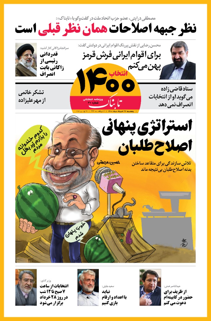 صفحه نخست ویژهنامه انتخاباتی تابناک ـ پنجشنبه ۲۷ خرداد ۱۴۰۰