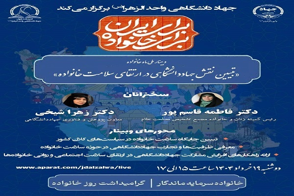 جهاددانشگاهی واحد الزهرا(س) وبینار ملی تبیین نقش جهاددانشگاهی در ارتقای سلامت خانواده را برگزار میکند.